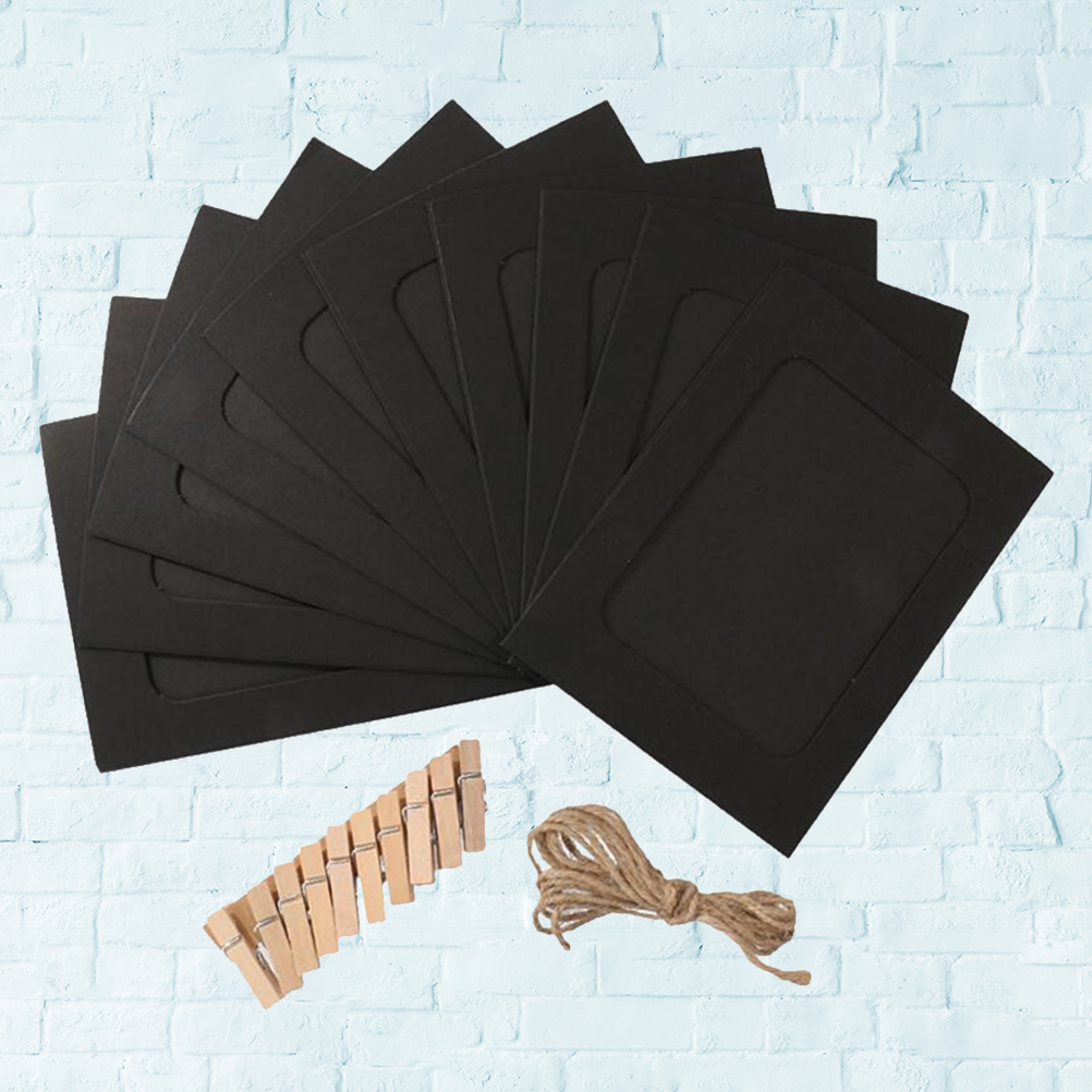 Nuolux 3 Packages 6inches Vintage Cowhide Hanging Paper Frame With Twine Clip Combination Photo Wall With Rope And Clips Black Walmart Com